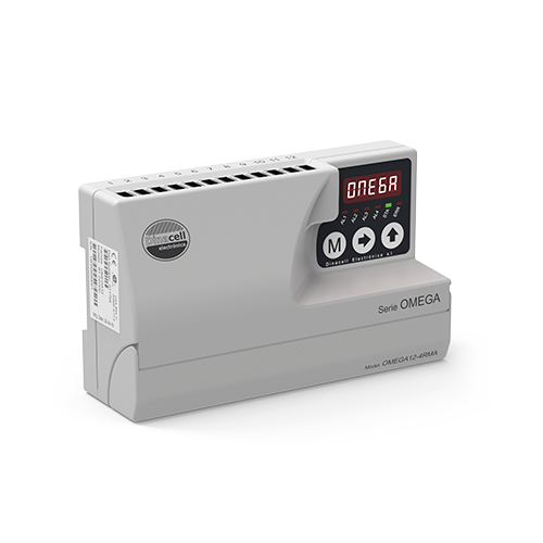 El equipo OMEGA es un limitador de carga que permite la lectura individual de hasta 16 sensores. Se integra con el sistema de control del ascensor para ofrecer alertas de sobrecarga, cabina vacía y detección de fallas.